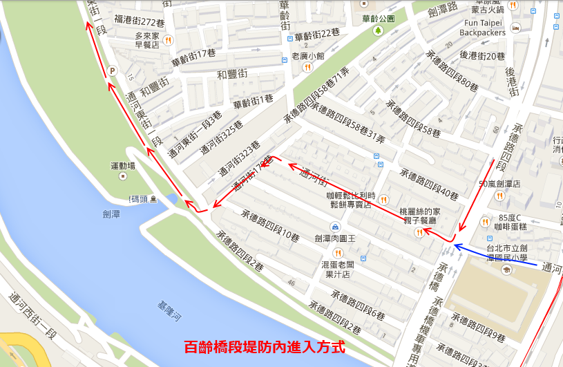 附件1:百齡DE壘球場及停車位置.png 附件2:百齡橋段堤防內進入方式.png |
