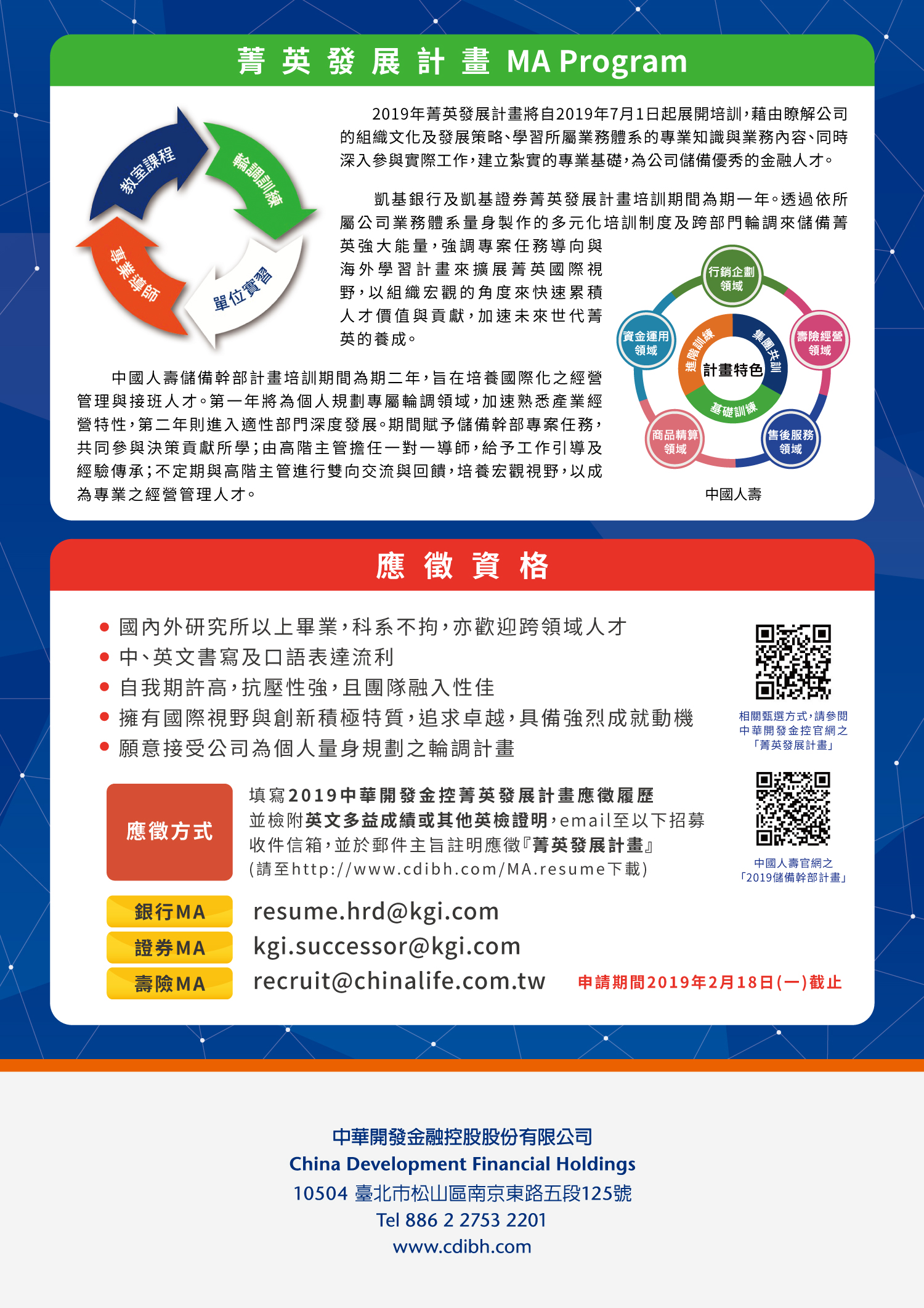 ★ 更多訊息 中華開發金控官網_菁英發展計畫專區 : www.cdibh.com/MA Apply it now! 附件1:2019MA EDM.jpg 附件2:2019 凱基銀行MA.doc |