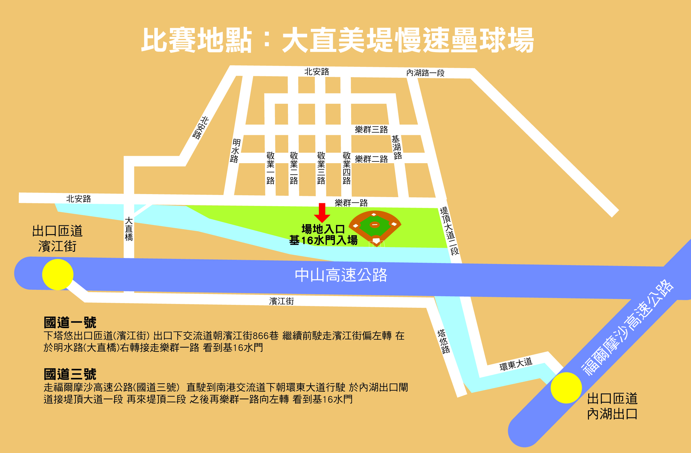 Attachments1:第10臺大屆EMBA慢速壘球聯誼賽-賽程表.pdf Attachments2:第10屆臺大EMBA慢速壘球聯誼賽-賽程圖.pdf Attachments3:第十屆臺大EMBA盃慢速壘球聯誼賽-比賽規則-0926領隊會議通過.pdf Attachments4:第10屆臺大EMBA慢速壘球聯誼賽-大直美堤慢速壘球場-交通圖.jpg Attachments5:第10臺大屆EMBA慢速壘球聯誼賽-日程表.pdf |
